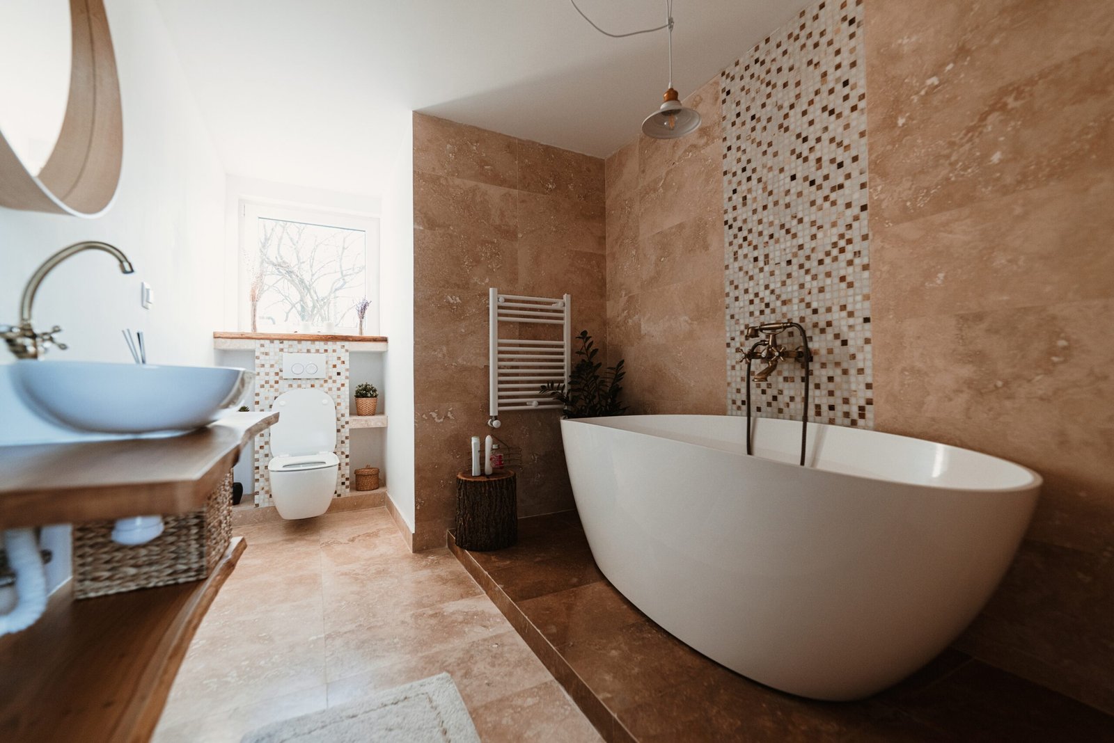 A modern backyard with stylish patio furniture and a contemporary home at sunset. Southern California